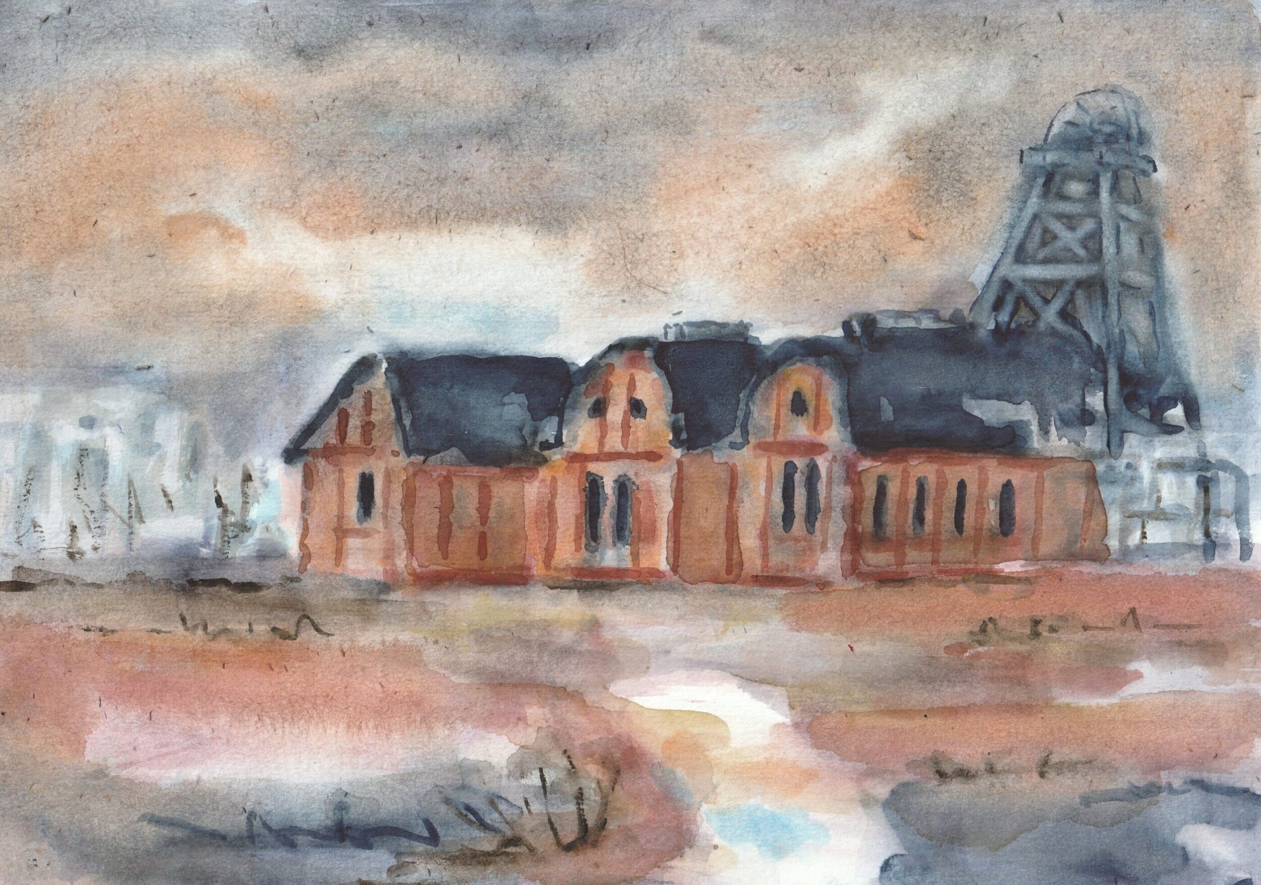 - Dorsten, Zeche Leopold Hervest, Aquarell auf Papier – 21 x 30 cm