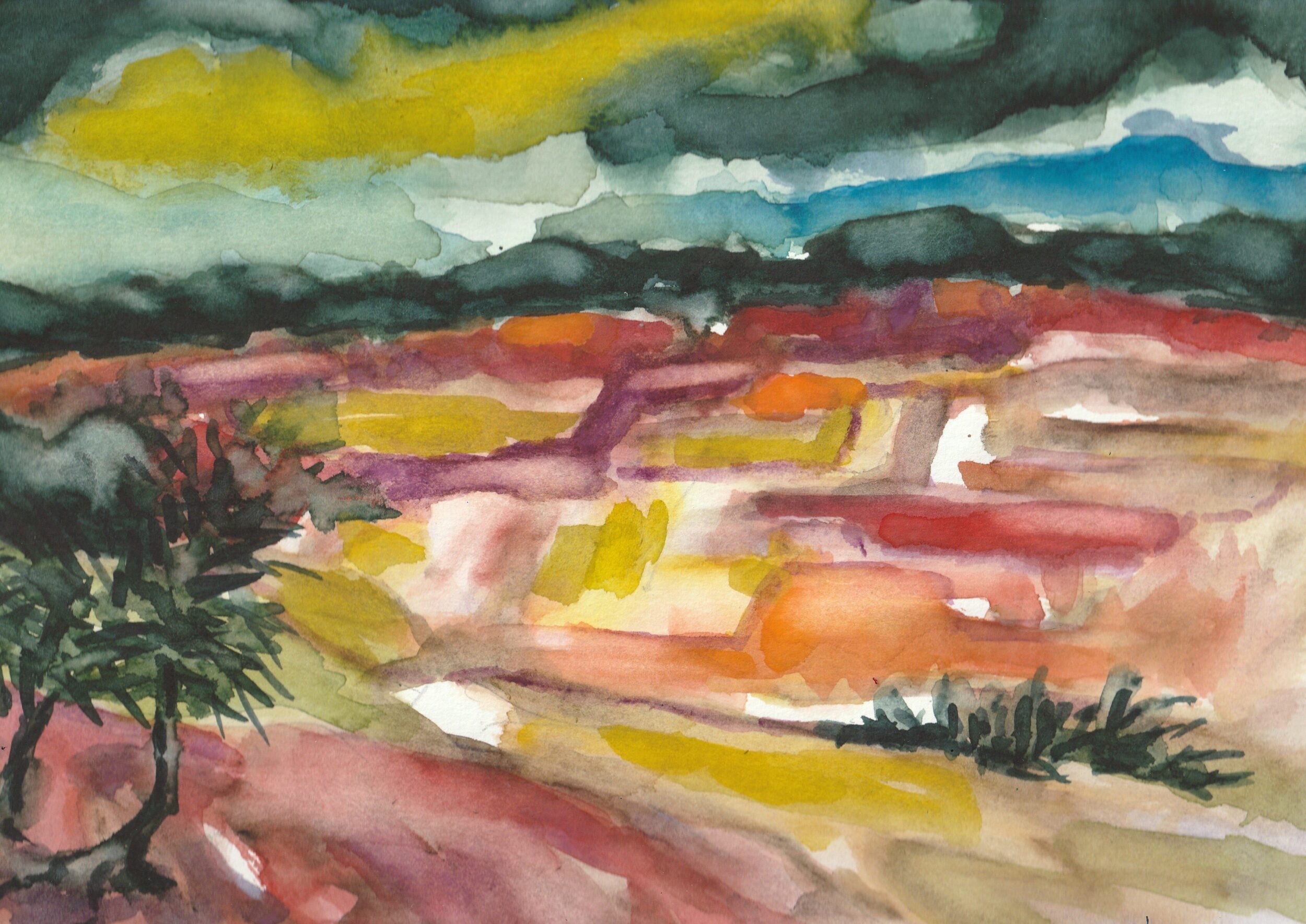 - Dorstener Felder im Vorfrühling – Aquarell auf Aquarellpapier – 24 x 32 cm